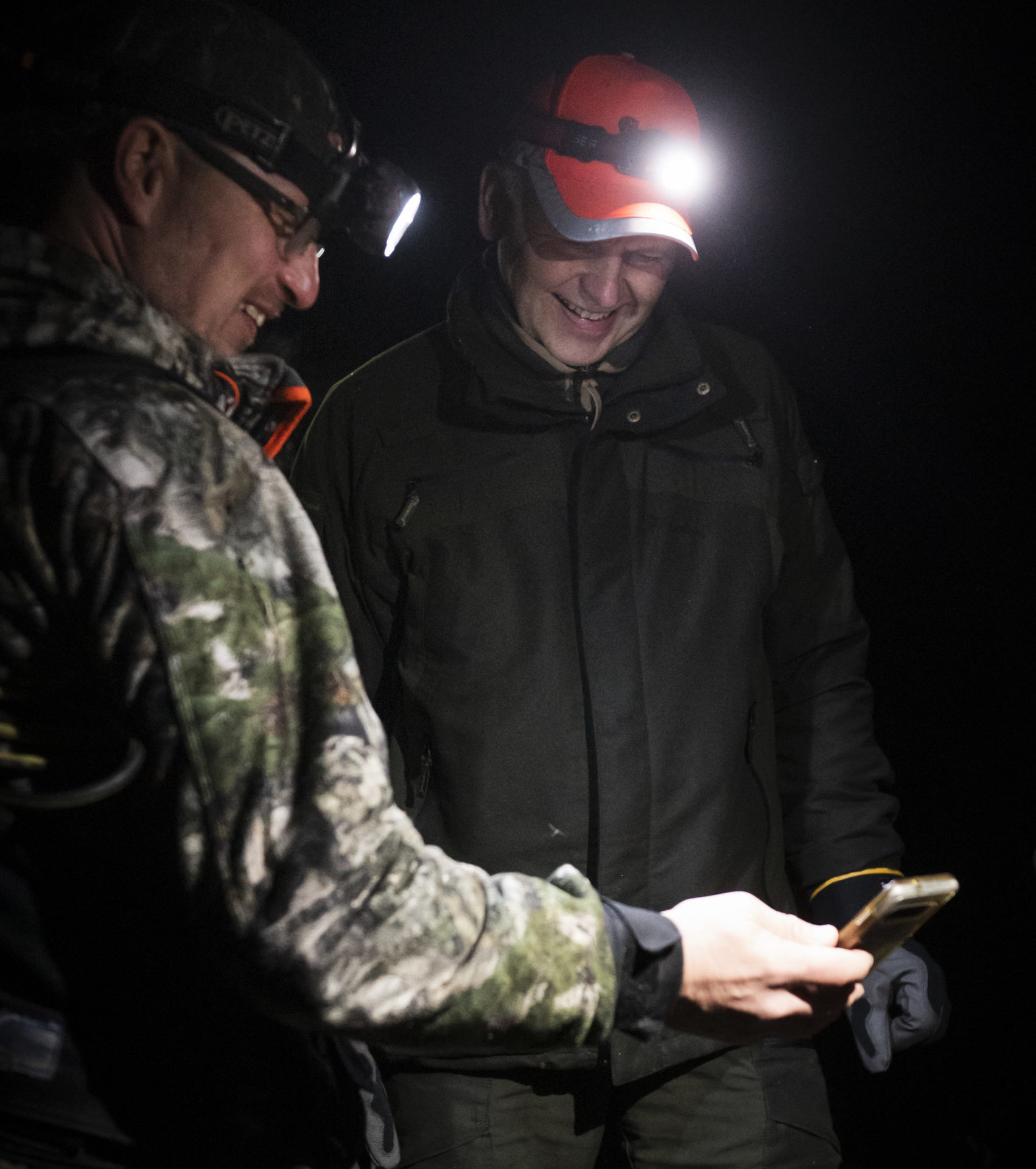 Pintapyynnin aikaansaama adrenaliini lämmitti illan pimeydessä niin metsästäjiä kuin ministeri Jari Leppää, vaikka sää tarjoili kaatosadetta ja tuulta 19 m/s.