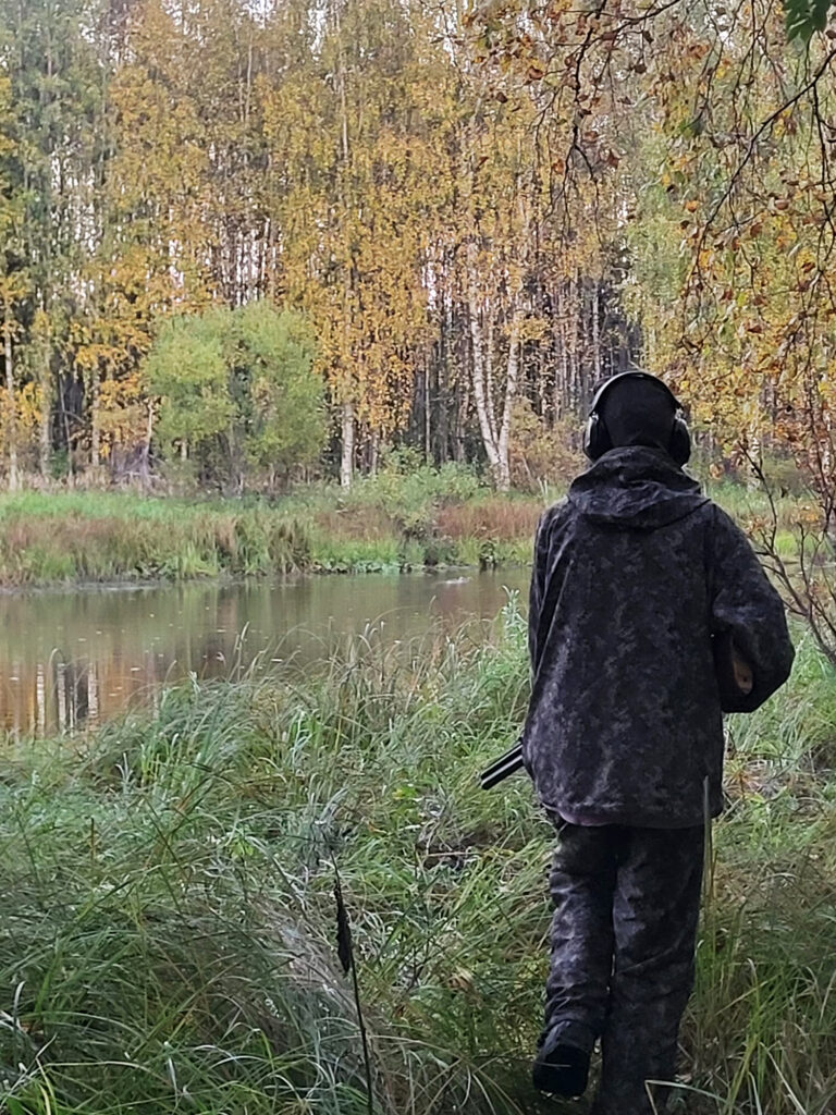 Olin juuri istahtamassa takaisin passiin, kun näin kaikki kolme sorsaa, nyt todella lähellä. Ikään kuin ne olisivat kulkeneet perässäni. Otin haulikon, mutta olin epävarma, kantaisiko laukaus sorsille asti. Kysyin asiaa isältä useamman kerran, mutta hän piti sormia korvissaan eikä kuullut mitään. Itselläni oli ainoat kuulosuojaimet.
