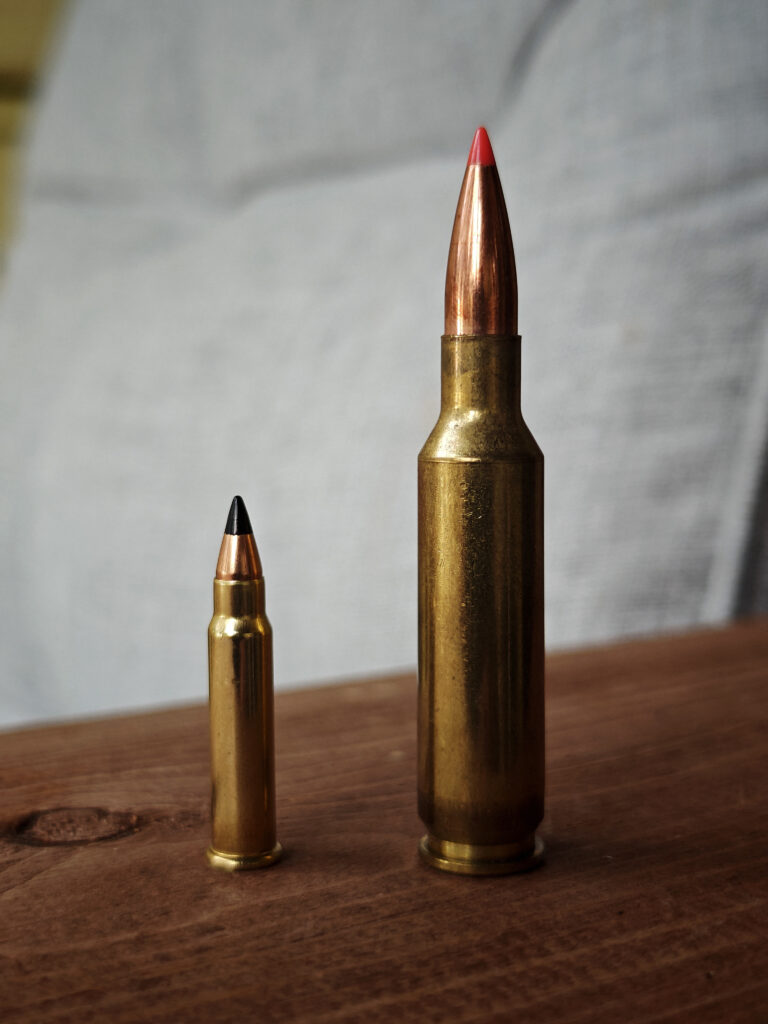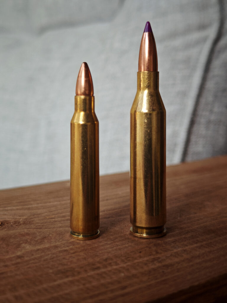 Pienpetokivääriksi sopivia aseita löytyy käytettyjen markkinoilta kosolti, erityisesti kaliipereissa .243 Winchester (oikealla) ja .222 Remington, eivätkä niiden hinnat huimaa päätä. Kuvassa vasemmalla oleva .223 Remington on tyypillisempi uusissa kivääreissä.