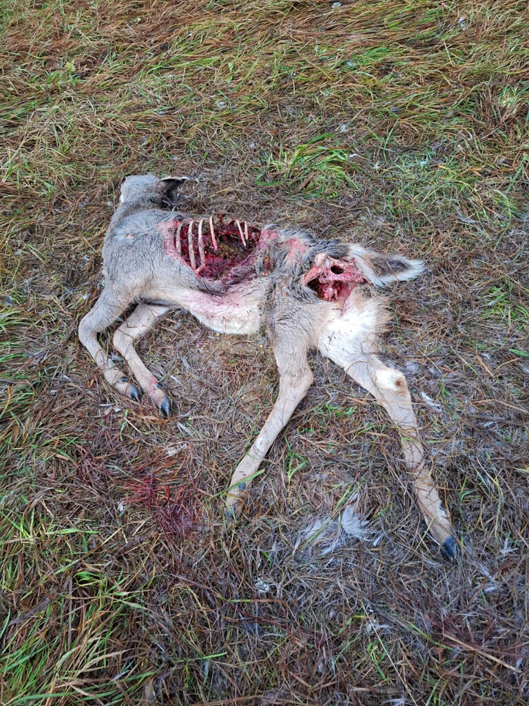 Alueella on 40 ilvestä ja 15 sutta. Vuodessa yksi ilves syö 10 valkohäntäpeuraa ja yksi susi 18 peuraa, joten petopoistuma on 670 peuraa. Suurpedot vievät siis vasatuotosta yli neljäsosan.