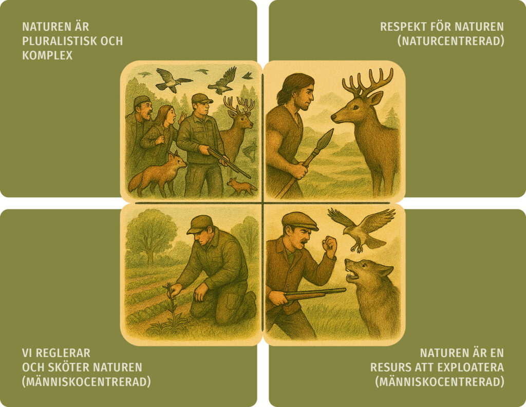 När vi diskuterar jaktliga frågor kan det vara nyttigt att komma ihåg att samtliga historiska epoker som vi presenterar här fortfarande förekommer i vårt samhälle. De placerar jägarens förhållande till viltet på individ-, samhälls- och ekosystemnivå samtidigt som de knyter viltfrågorna till vårt samhälleliga sätt att fungera.