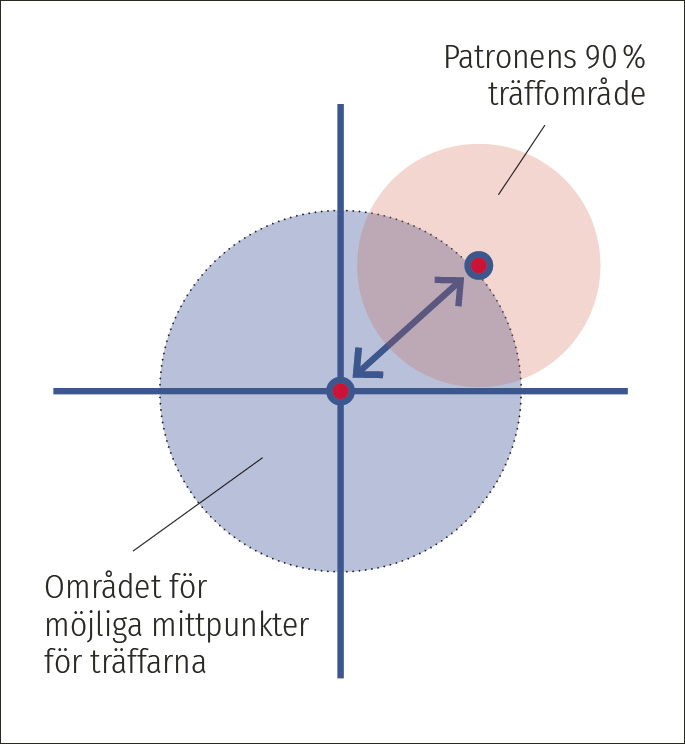 Det förväntade träffområdet och patronens träffområde