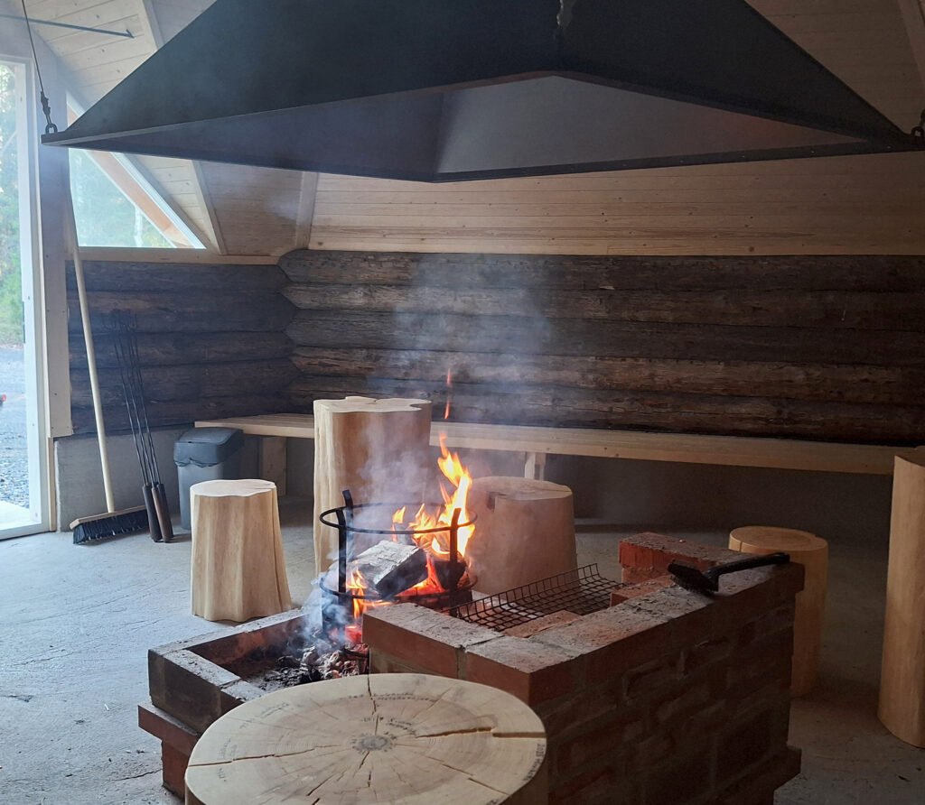 Sedan åkte vi till ett annat ställe för att pröva jaktlyckan, men där var terrängen alldeles tom. Det var således dags att byta taktik och åka till kåtan – för att grilla korv, naturligtvis!