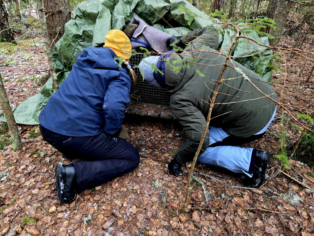 – I princip försöker vi alltid komma iväg genast, berättar Annika Herrero som är forskare på institutet. Men på kvällar åker vi inte några långa vägar från huvudstadsregionen för att sätta halsband på lodjur. Djur som har gått i en fälla sent på kvällen eller på natten tar vi hand om följande morgon.