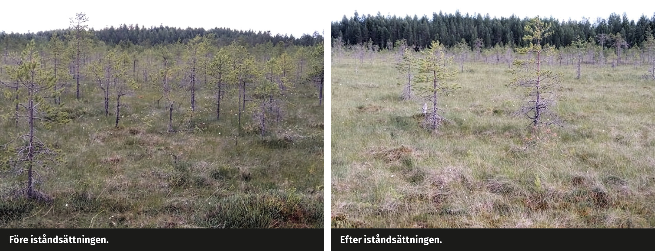 Vi röjde bort de små och tvinvuxna tallarna och de täta snåren, och återställde öppenheten, men bevarade känslan av en myr i naturtillstånd. Myren ska inte förvandlas till något torg utan ska återställas till en lämplig miljö för orrarna. Vi samlade noggrant ihop de röjda stammarna och trampade ner dem i de igenvuxna öppna dikena; på det viset blev också myrens vattenbalans återställd.