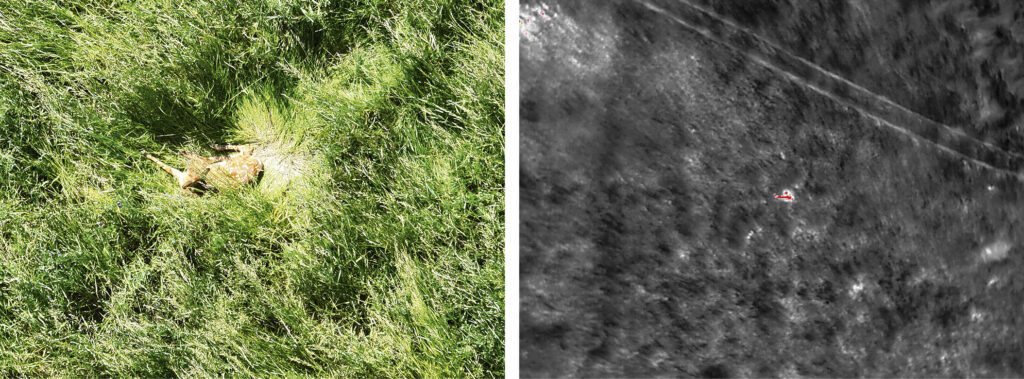 Med drönare går det att rädda rådjurs- och hjortkalvar från slåttermaskiner.